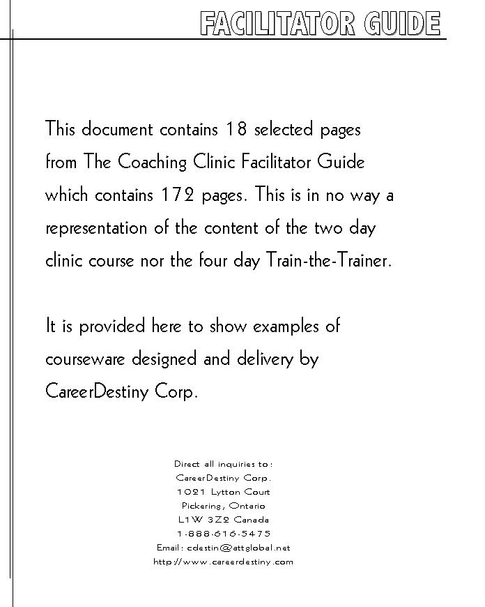 2001, Corporate Coach U International. Version 3. All rights reserved.